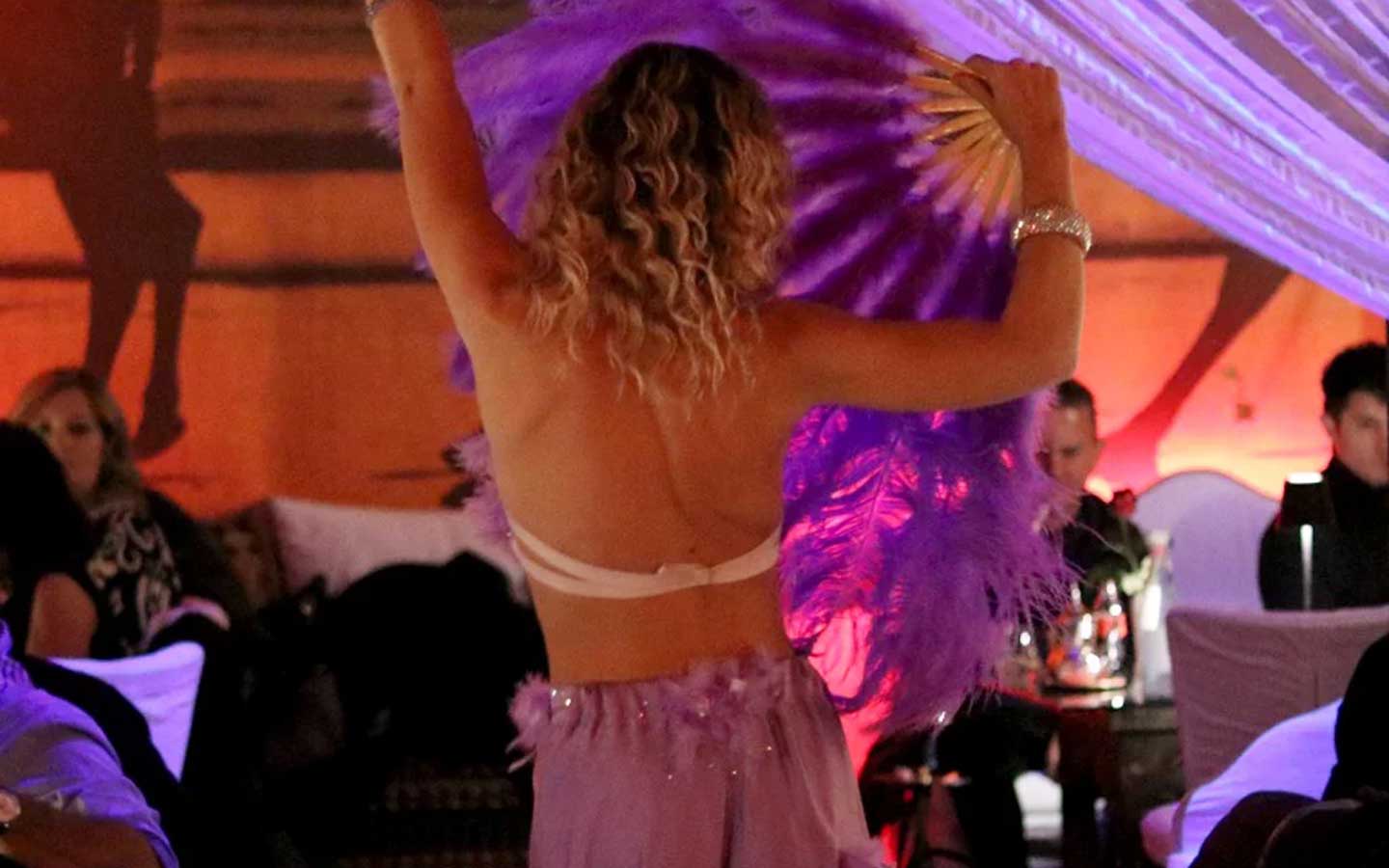 A El Jadida MilanoIl dopocena diventa un momento memorabile grazie agli spettacoli di danza del ventre in stile egiziano contemporaneo. Le ballerine professioniste di El Jadida ristorante con musica dal vivo e Dj Milanopadroneggiano movimenti sinuosi e ritmici, arricchiti da veli, ventagli, ali, spade e candelabri, creando un connubio perfetto tra fascino visivo e atmosfera coinvolgente.
