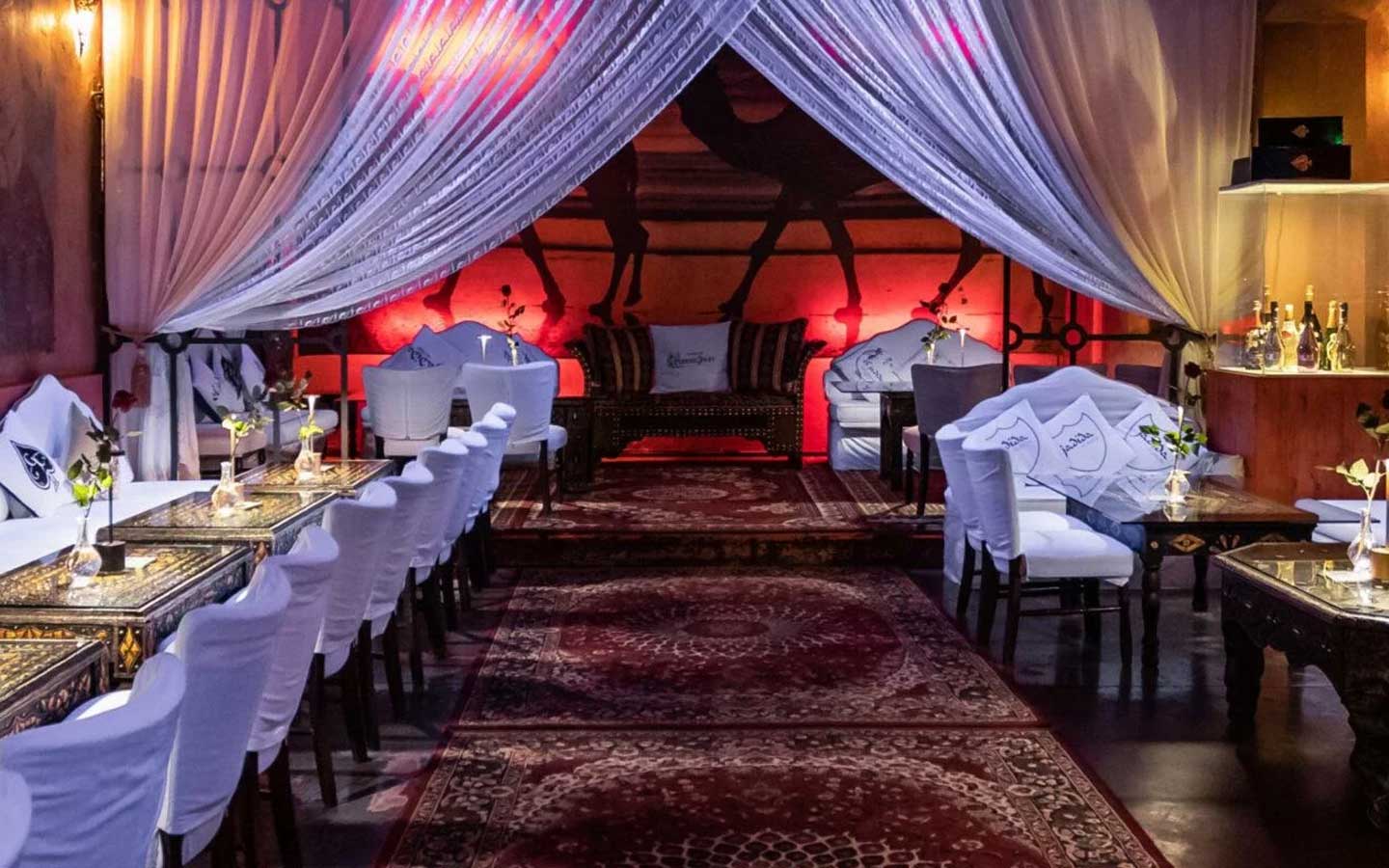 Un luogo che cambia veste con le stagioni , ideale per serate con DJ Set a Milano e eventi esclusivi a Milano: fresco e accogliente durante le serate estive e avvolto da un piacevole tepore d’inverno. “La tenda dello sceicco” richiama l’atmosfera delle raffinate tende beduine, con giochi di tessuti e dettagli che trasportano gli ospiti in un’ambientazione esotica e affascinante. È lo spazio ideale per feste, eventi di gruppo o serate speciali, capace di unire convivialità e suggestione. Più che un semplice dehor, è una vera e propria cornice scenografica che rende ogni occasione indimenticabile.